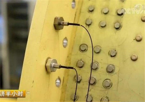 你看,從其中引出的細(xì)小光纖就連接到監(jiān)測(cè)儀器上,屆時(shí)螺栓就能主動(dòng)感知載荷力量的大小,并能對(duì)自身狀態(tài)進(jìn)行實(shí)時(shí)在線(xiàn)監(jiān)測(cè)。如果螺栓出現(xiàn)松動(dòng)或斷裂的跡象時(shí),系統(tǒng)就會(huì)及時(shí)發(fā)出預(yù)警了。