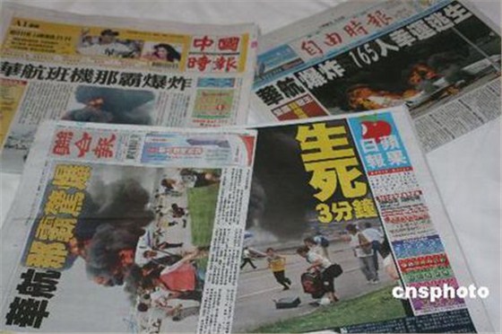 臺(tái)灣各大報(bào)紙均在頭版報(bào)道了“華航”班機(jī)爆炸事件