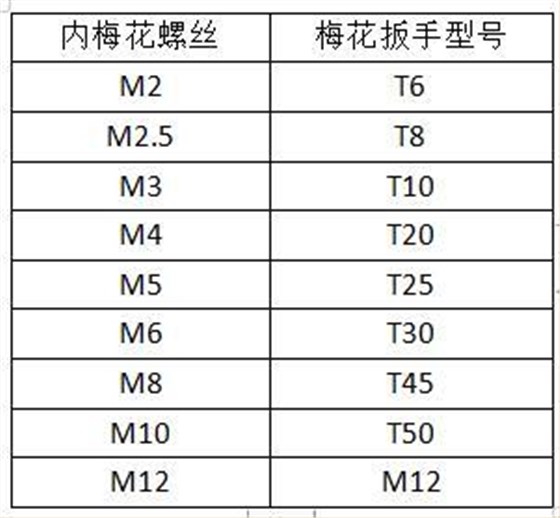 一般內(nèi)梅花槽螺絲大小對(duì)應(yīng)的梅花扳手規(guī)格如下: